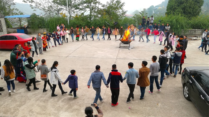 晚会的第二天,两百多位彝族学生来到了西山,亲手做起了坨坨肉、荞面馍等丰富的彝族餐。大家唱着祝酒歌,跳着踢踏舞,吃着民族餐,沉浸在欢乐的气氛中,共同欢庆着彝族年。