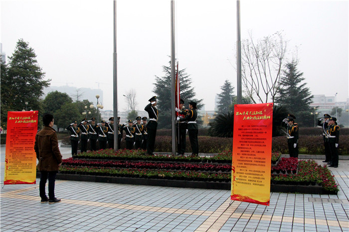 为纪念我国第三个“国家宪法日”,进一步普及宪法知识,弘扬宪法精神,维护宪法权威,增强广大师生法治观念,12月2日上午,由校团委、大学生社团联合会主办,晨风法学社和国旗仪仗队承办的“深入学习宪法知识,大力弘扬法治精神”纪念宪法日升旗仪式暨朗诵活动于高坪校区行政楼前顺利举办。