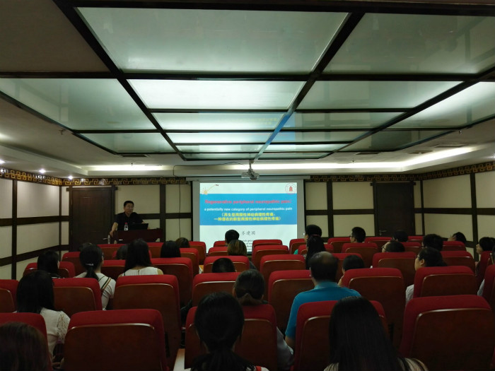 近日,四川大学基础医学与法医学院副院长、四川省解剖学会理事长齐建国教授来我校进行学术交流,并作了题为“再生性周围性神经病理性疼痛:一种新的病理性疼痛”的学术讲座。齐建国结合自己的研究方向深入浅出地讲解了再生性周围性神经病理性疼痛的相关机制、原因及临床意义等。