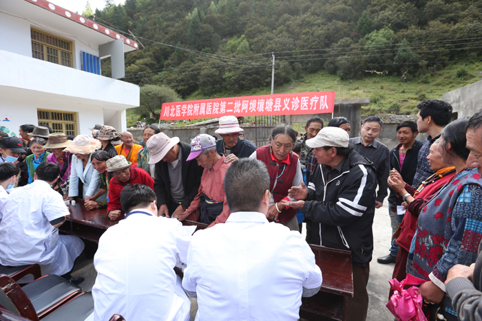 近日,学校副院长、附属医院院长周京国,附属医院副院长王晓明,附属医院党委副书记、纪委书记陈绍平与部分医护人员和职能部门工作人员组成第二批精准扶贫工作组,来到阿坝州壤塘县蒲西乡尤日村,开展了以“健康到基层,卫生惠民生”为主题的义诊巡诊和健康咨询活动。