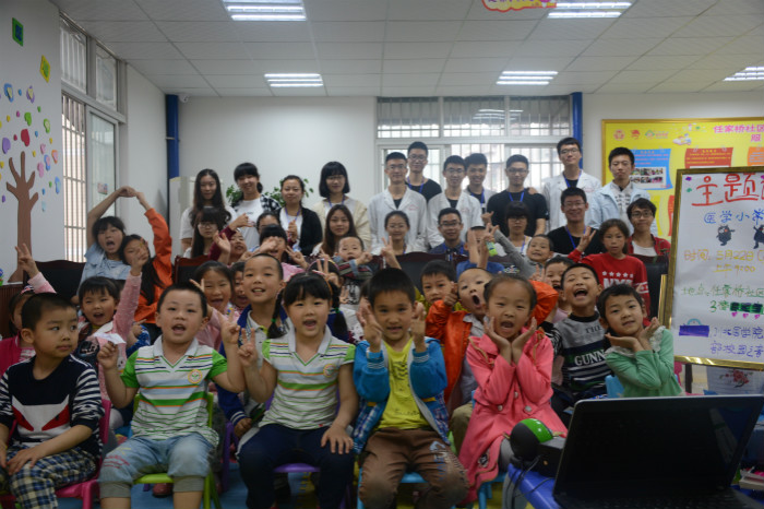 活动中,广播站成员用ppt的形式为小朋友带来了精彩的“卫生小知识”的讲解,并将孩子们喜爱的卡通图片与卫生小知识相结合,以生动形象的方式为在场所有儿童讲解了饮食安全问题以及受伤处理措施等。活动期间,广播站成员还用有奖问答的形式使小朋友们对所讲解的医疗小知识进行巩固。抽问现场热闹非凡,在场儿童积极参与,有效促进了孩子们对卫生知识的理解,加以养成良好的生活习惯。在六一儿童节即将来临之际,广播站的同学们和在座儿童一起演唱了《六一国际儿童节歌》,提前送上了对孩子们六一儿童节的祝福,愿他们平安、快乐、健康成长。