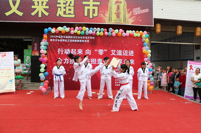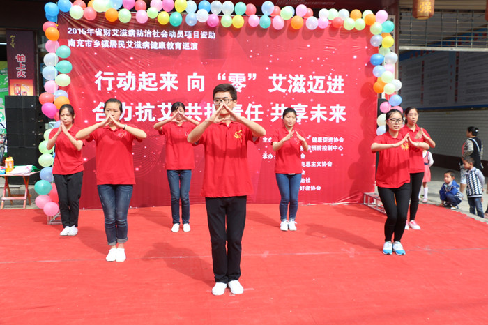 为普及艾滋病的防治知识,转变大众对艾滋病患者的歧视态度,营造“全民防艾”的和谐氛围,近日,由我校“携爱同行”健康促进协会、高坪区疾病预防控制中心主办,我校武术协会、夏日吉他社、英语协会、家教协会、青年马克思主义学会共同承办的防艾大型文艺汇演在高坪区小龙镇顺利开展,超过500名当地居民参与到活动当中。