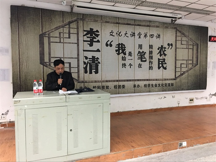 为增强医学生的文学素养,培养我校学子的人文情怀,我校第四期文化大讲堂于3月29日晚在高坪校区图书信息大楼102教室成功举办。四川省作家协会副主席、南充市作家协会主席、国家一级作家李一清先生应邀莅临我校,开展了“我始终是一个用笔在精耕细作的农民”讲座,与现场300余名师生分享了他的文学之路。