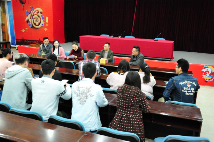 下午四点,南充市广播电视台副总编周毅,南充交通音乐广播FM91.5副总监、主持人周英,著名主播夏文婷,播音组组长张翼飞等一行人带领我校播音员参观了南充市电视台新旧演播室、南充市交通广播电台FM91.5和南充综合广播电台FM100.4直播室,我校广播站成员纷纷坐上新闻演播室的主座模拟正式电台播音。在随后的座谈交流中,我校广播站同学分别就新闻、文学、影视、生活、音乐等内容进行了播音演练,市广播电视台的主持人们从气息、音色、重音等方面逐一对同学们的播音演习进行评价和指导,并指出,播音员播音时的心态、精神状态和稿件熟悉程度都会影响播音效果。为了方便同学们理解,主持人老师们现场亲自示范表演,其中著名主持人——“海萌”周英老师的示范更是博得满堂掌声。