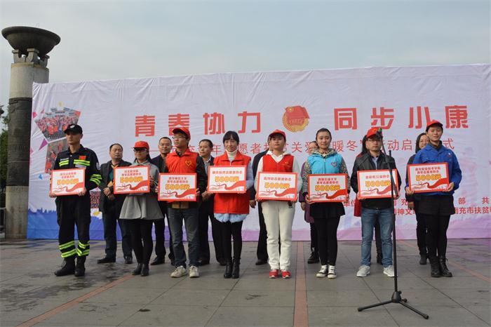 为积极响应党中央、国务院在十八届五中全会上提到的关于全面建成小康社会,实现我国现行标准下农村贫困人口全面脱贫目标,由中共南充市委宣传部、共青团南充市委等主办的南充市青年志愿者扶贫关爱“暖冬”行动的启动仪式于12月4日上午在南充市顺庆区北湖公园顺利举行,我校团委老师带领近百名志愿者应邀到场参加活动。