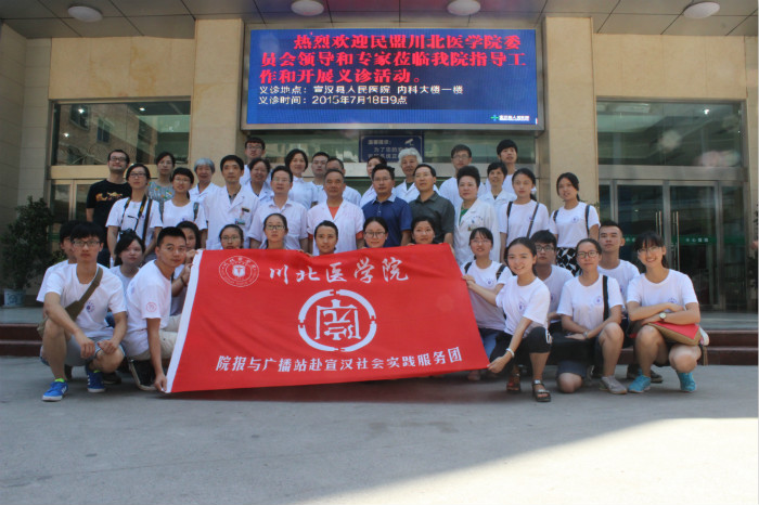 为培育和践行社会主义核心价值观,践行习近平总书记提出的“八字真经”,7月18日,民盟川北医学院委员会赴宣汉义诊活动在宣汉县人民医院内科大楼顺利举行,来自我校民盟的王明炽、雷俊阳、唐文国等一行14名医学专家和学校院报、广播站三下乡全体成员参加了此次活动。