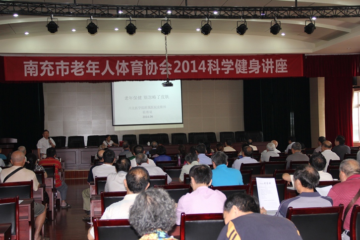 我校作为南充市高校老体协科学健身指导委员会秘书单位,应南充市老体协的邀请,6月11日下午,组织派出了皮肤性病学专家眭维耻、老年病学专家吴碧华两位教授分别为南充市辖三区、高校、石油、市老体协各系统分会等老同志代表做了“老年保健别忽视了皮肤”和“中老年健康讲座”、“痴呆的早期诊断和预防”的健身讲座,共有200余人次到场聆听。通过专家们通俗易懂,切合实际的讲解,使老同志对常见的皮肤病、心脑血管病、老年性痴呆等疾病的病因、防治有了初步认识和了解。活动受到了老同志们的欢迎和好评。
