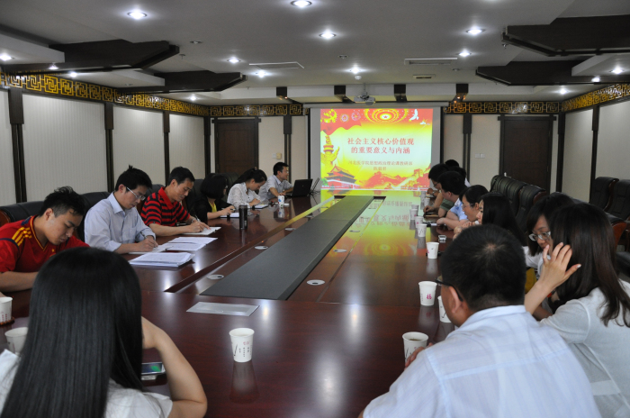 6月15日下午,社会主义核心价值观专题讲座暨2011级毕业研究生干部座谈会在我校科技楼四楼会议室成功举行。我校思想政治理论课教研部副主任陈毅君副教授作了题为《践行和弘扬社会主义核心价值观,为实现伟大医学梦凝聚正能量》的专题讲座。2011级研究生班委、党支部委员、研究生会全体干部,以及研究生处相关工作人员参加了会议。会议由研究生处党总支书记胡红一主持。