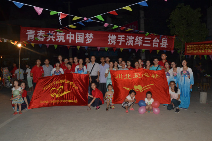 7月10日-17日,2014年川北医学院思政部·爱心社医疗卫生社会实践服务队,以“奋斗的青春最美丽”为主题,赴三台县开展大学生三下乡社会实践活动。
