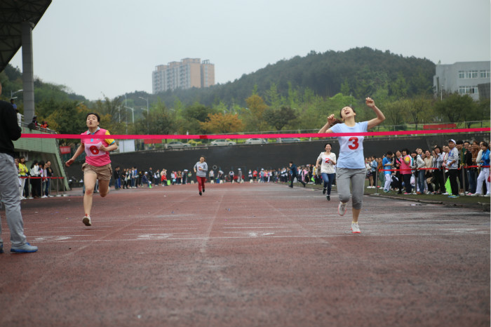 我校教职工组可谓人才济济。11日下午2:30,来自附属医院的蒲霞老师,步伐轻盈,迅速专业,经过激烈角逐最终夺得百米赛跑教职工女子组桂冠;卫冕冠军后勤部赵婷奋勇拼搏,全心投入,即使略逊一筹,但也不失风采。光荣属于他们!