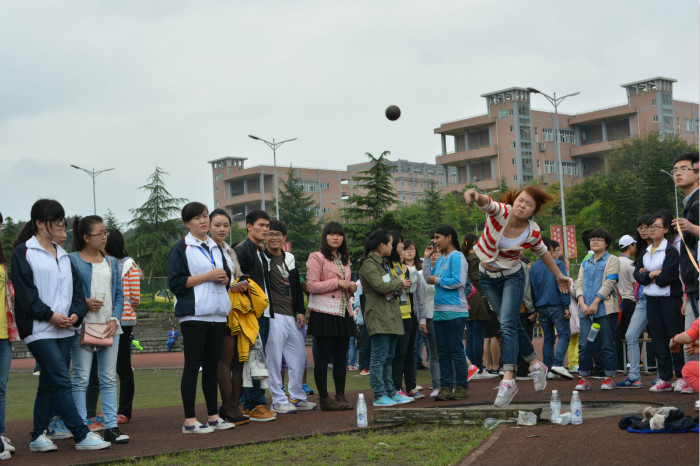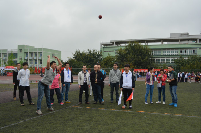 11日上午10:30,男子正面双手实心球掷远开始比赛,上届卫冕冠军--来自后勤组的体育爱好者杨瑜不负众望以17.71米的惊人成绩再次证明了他的实力。来自外语人文系的朱龙老师仅以0.29米之差紧随其后,直逼冠军宝座,竞争极其激烈。