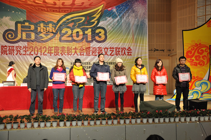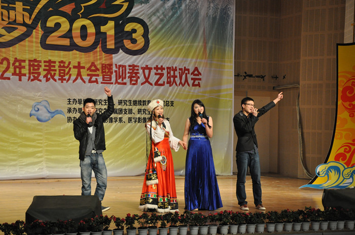 回首往昔工作更上台阶,展望未来岁月催人奋进。1月6日下午, 2012年度研究生表彰大会暨“启梦2013”迎春文艺联欢会在世纪会堂隆重举行。宣传统战部、研究生处、医学影像学系、医学影像系党总支、校团委负责人,在校研究生及医学影像学系部分学生加了表彰大会并观看演出。