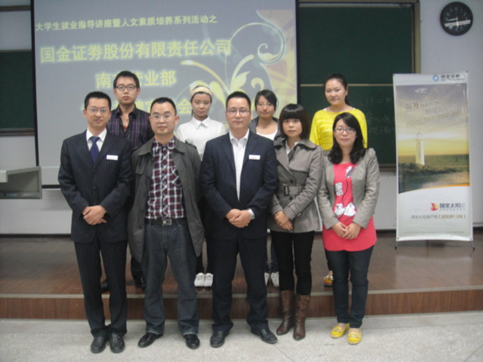 专场招聘会前,国金证券南充营业部营销总监王先全,市场部经理薛桂林应邀分别作了题为《我的创业之路》和《我国证券行业发展》的就业创业指导专题讲座。国金证券南充营业部一行还参观考察了招生就业处、人文社科学院。招生就业处、外语人文党总支相关负责同志参加了上述活动。