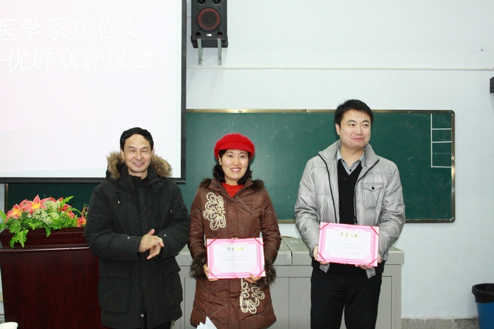 该党总支书记何昆蓉就一年来创先争优活动开展情况进行了自评总结。她说,临床医学系党总支按照学校统一部署和要求,认真落实各项措施,将创先争优活动与建党90周年纪念活动、学习型党组织建设、60周年校庆、专业教育等相结合,在创新活动载体、丰富活动内容、服务学生成长成才等过程中涌现了一批先进集体和个人。她还就2012年创先争优活动的深入开展作了安排。学生代表邱彬代表党支部发言。全体到会师生填写提交了群众评议表。
