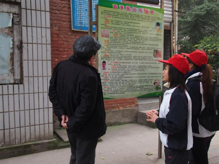 同日,我校青年志愿者协会参加了南充市学习雷锋活动启动仪式并前往东南社区开展了“学雷锋”爱心慰问活动,向社区民众宣传常见病预防知识并发放了药物、防治手册等爱心物资,受到了社区居民的热烈欢迎。