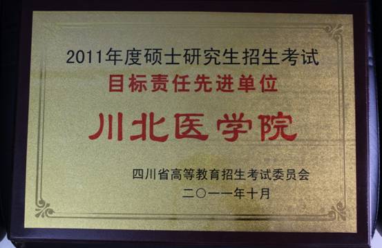 近日,从四川省2012年研究生招生工作会议上获悉,我校喜获“2011年研究生招生考试目标责任先进单位”(川招考委[2011]61号)称号,至此我校已连续4年获此荣誉称号。