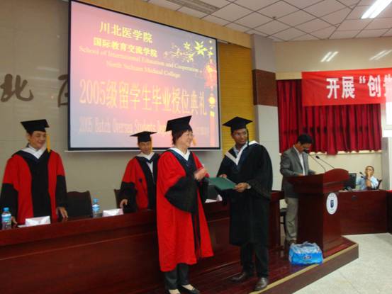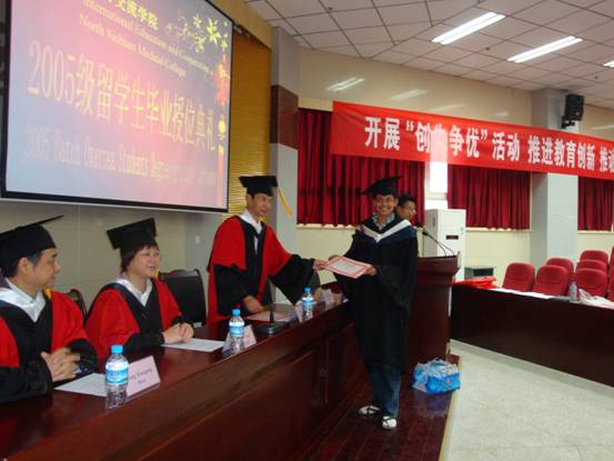9月27日下午,我校2005级留学生毕业授位典礼在图书信息中心407室举行。院长康健、党委副书记李成军出席典礼,国际教育交流学院院长杨小刚,副院长张思国、严宏伟以及该学院全体教师等参加了毕业典礼。