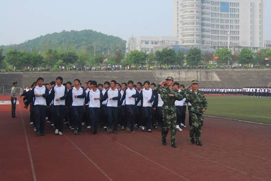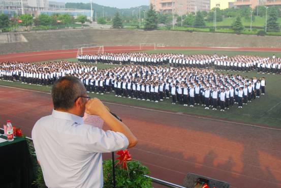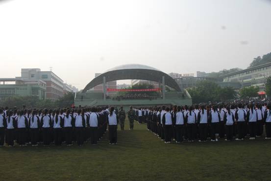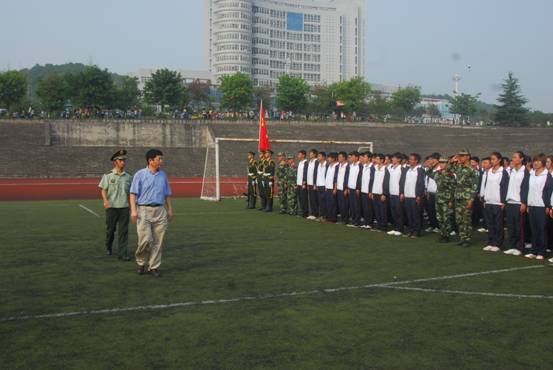 2011年9月16日下午4点,我校2011级新生军训总结大会暨开学典礼在高坪校区足球场隆重举行。2011级全体新生经过长达14天的艰苦军训接受了检阅,开始了新的大学生活。出席大会的领导有:学院党委书记凌保东,院长康健,党委副书记李成军、鄢佳程,副院长李健、杜勇、雷军,武警8740部队吴家江少校等。学校有关部处、各院系的负责同志和老师以及2011级全体新同学参加了典礼。典礼由学院党办、院办主任胡春梅主持。