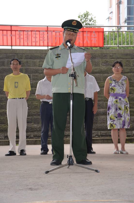 学校党委副书记李成军教授首先代表学院党委、行政向担任学生军训任务的武警8740部队和所有新同学表示欢迎。他指出,大学生军训是大学生成才的需要,也是国防建设的需要。为此,他殷切的希望同学们要提高认识,进一步认清军训工作的重要意义,在军训中要严格要求自己,刻苦训练,磨练自己顽强的意志,并且要严守纪律,争当模范,增强文明修养的自觉性。同时希望各有关部门要精心组织、通力协作,确保军训任务的圆满完成。