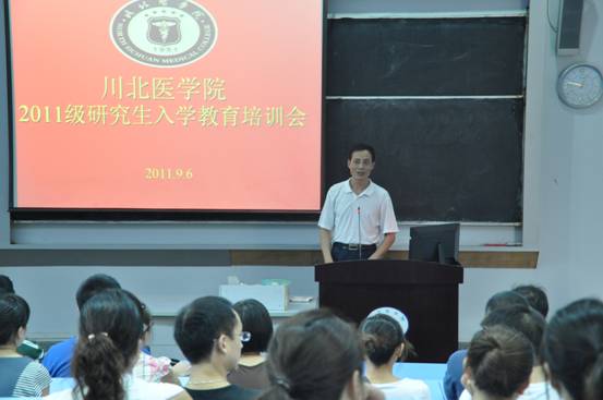 9月6日下午,我校2011级研究生入学教育培训会在顺庆校区研究生教室顺利举行。研究生处、保卫处、后勤产业处、基础医学院、临床医学系、医学影像学系、第二临床学院等部门负责同志和老师参加了会议。会议由研究生处副处长樊国康主持。