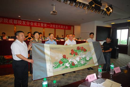 川北医学院院长、校友工作研究总会副会长康健向为成都校友分会成立捐资捐物赞助的校友颁发荣誉证书,我校重庆校友分会向成都校友分会送贺礼,学校和成都校友分会互赠了纪念品。