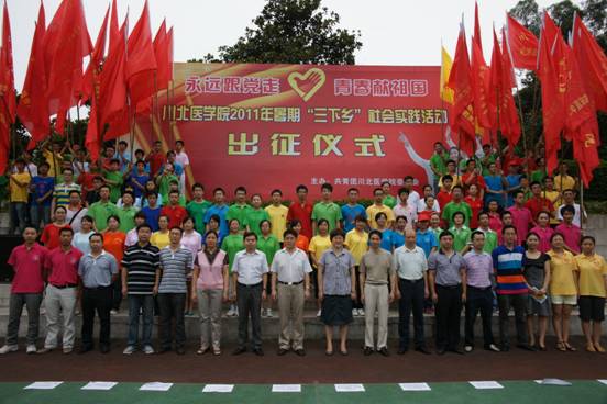 据悉,今年我校暑期“三下乡”社会实践活动以“永远跟党走,青春献祖国”为主题,共有37支实践团队,800多名师生将奔赴川渝各地开展医疗卫生服务、法律法规宣传、社会调研、党史宣讲、义务支教等内涵丰富、形式多样的活动。其中,“川北医学院赴重庆市永川青峰镇医疗服务团”获全国重点团队,是四川省唯一的一支全国重点团队,全国仅120支。