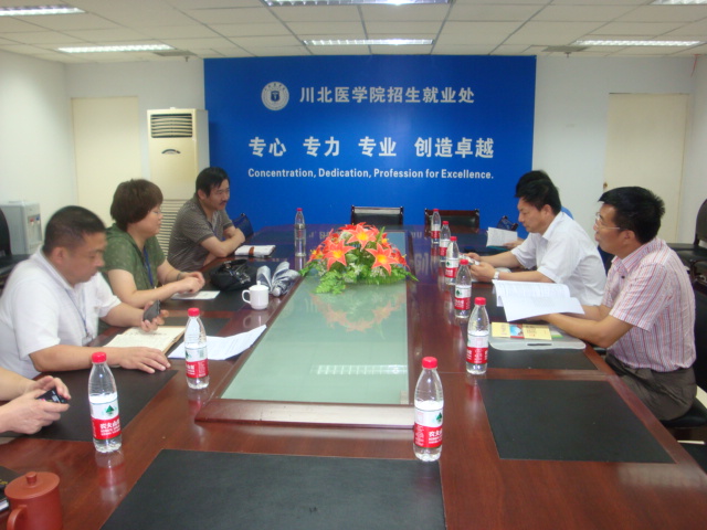 狄志军书记首先听取了招生就业处处长叶政对我院2011年招生工作各方面的情况汇报,肯定了之前已经结束的提前批招生工作,对我院生源、专业结构、毕业生就业前景进行了细致的询问,并特别关注了录取中的体检标准、信访接待等环节,针对近年来四川招生战线上出现的一些问题,狄志军书记特别强调了学院招生必须严格遵守各项政策法规,按照“六公开、六不准”的要求落实高考“阳光工程”。
