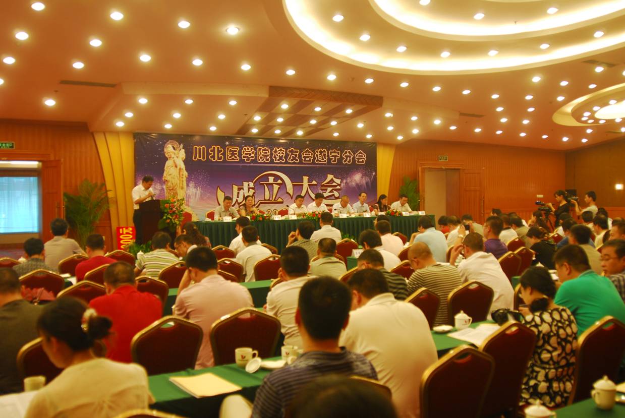 新当选的遂宁校友分会第一任会长陈拥军发言,指出遂宁校友工作研究会的成立为校友之间、校友与母校之间加强联系提供了桥梁和纽带,遂宁校友分会将利用母校的优质资源、发挥校友各自优势,凝聚校友力量、整合校友资源,多做有利于校友发展、有利于母校发展的工作,使校友会成为真正的校友之家。他表示将积极开展丰富的联谊活动,加强遂宁校友之间、与其他各地校友分会之间、与母校之间的联系,把遂宁校友分会办成川北医学院遂宁校友的温馨家园,促进母校、地方与校友的共同进步和发展。
