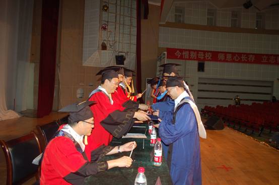 李成军副书记宣布了表彰学院2011届优秀硕士论文、院优秀毕业硕士研究生、2008级年度优秀硕士生的决定,学校硕士学位委员会主席、院长康健宣读了授位决定,领导们给受表彰研究生进行了颁奖并为毕业硕士学生授位、拨苏。