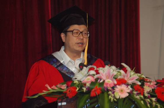研究生导师代表杨正伟教授发言,用三句“请让我真诚的告诉你”表达了一位导师对同学们的无限关爱,他真诚的祝福同学们,真诚的告诫同学们继续努力,勇敢面对前进路程中的坎坷和竞争,真诚的希望同学们继续完成未完成的科研项目,热爱并倍加努力的干好未来的本职工作,为将来进一步的发展打下坚实的基础,随时注意提醒自己是否需要进一步的学习。他还借用“羽毛不丰满者,不可以高飞”的古训忠告全体同学“如果你是一只会飞的鸟,你可以飞得很高很远”,并希望同学们充分正视医疗卫生职业的艰巨性,实现自己的理想,引起了所有同学的深深共鸣。