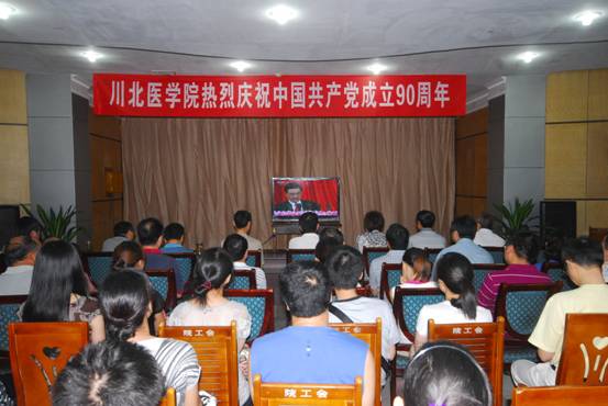 7月1日,庆祝中国共产党成立90周年大会在北京人民大会堂隆重举行。当天上午,我校党政领导、党委中心组成员以及各总支书记、各职能部门负责人和工作人员、人文社会科学院和思想政治理论课教研部教师在顺庆校区工会俱乐部集中收看“庆祝中国共产党成立90周年大会”。