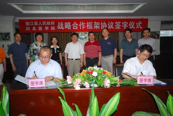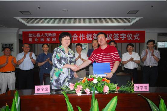 根据《垫江县人民政府川北医学院战略合作框架协议》,今后我院将与垫江以卫生合作交流为载体,以发展共享为基础,以优势互补为导向,加强协作、互相支持、共谋发展,广泛开展人才培养、科研与产业化发展、医疗服务等方面的合作,通过建立医疗交流与协助机制、两地专家定期交流、沟通机制、人才录用、培训机制,进行多领域,全方位的合作。根据《川北医学院垫江县人民医院非直管附属医院合作协议》,垫江县人民医院按照《普通高等医学院校临床教学基地管理暂行规定》的要求,建设成为我院非直管附属医院,与我院在学生临床实习、人才培养、科研合作与技术培训、科研项目申报等方面全面合作。