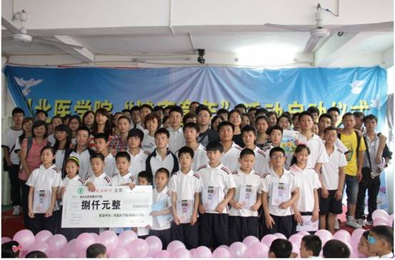 李春霖副校长首先对到场的我校师生表示热烈的欢迎,衷心感谢他们对残障儿童给予的生活和学习上的帮助与关爱。何涛书记在发言中要求大学生要充分发挥“健康童年”社会实践活动的优良传统和作风,多到社区、多到基层体验生活、奉献知识。