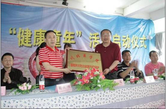 仪式上,张波院长和胡民翔校长签署了《共建大学生社会实践活动基地协议》,并为基地挂牌。团委书记汪小平、基础医学院党总支副书记林锋代表学校把筹到的8000元捐款,600多本图书资料送到了残障儿童手中。