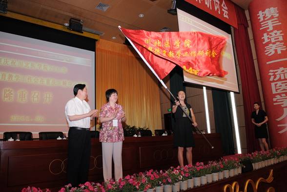 会上,还进行了会旗交接仪式。在一片掌声中,学院院长康健、三峡临床学院院长李庆平一起向下一届承办单位攀枝花中心医院纪委书记张月辉传交了临床教学暨德育教学工作研讨会会旗。