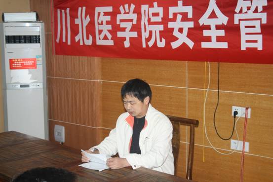 日前,川北医学院安全管理员培训工作会在西苑山庄会议室召开。会议的主题是进一步明确安全员的职责和工作要求,通过安全员工作扎实有效的开展,促进学校各项安全保卫工作责任与任务的落实。会议由保卫处副处长许仕全主持。