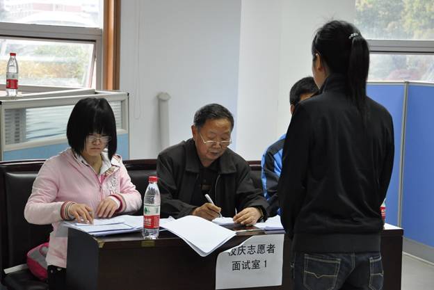 本次选拔采取小组面试的形式,志愿者进行一分钟自我介绍,校史讲解员除自我介绍外,还当场诵读普通话材料,评委们根据其填报意愿、个人经历、特长等多方面素质进行了综合考察。最后,共选拔出了400余名同学进入到下一轮复试。