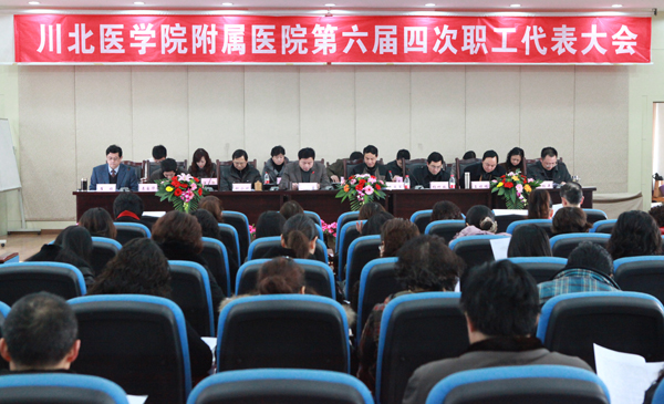 2011年3月26日,我院附属医院第六届四次职工代表大会隆重召开。医院全体在家党政领导及正式代表、列席代表、特邀代表200多人参加了会议。川北医学院党委副书记李成军、学院工会副主席杨竹秋出席会议。大会由医院党委副书记、纪委书记陈绍平主持。