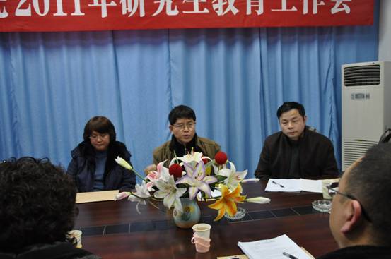 研究生处处长游金辉教授首先介绍了全国研究生教育的历史及现状,分析了我校研究生教育的现状、取得的成绩及面临的问题,并针对所面临的问题提出了经过调研后的建议,着重提出了我校研究生教育的“三级管理、中心工作、效率”等相关管理理念;同时,希望学校各级领导更加重视研究生教育,加大软硬件投入力度。研究生处副处长樊国康副教授随后讲解了我校研究生的培养流程及各院系需做的具体工作,布置了近期研究生培养需要完成的任务。