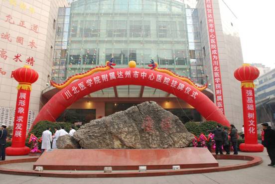 达州市卫生局副局长李钧宣读了“达州市卫生局关于达州市中心医院与川北医学院建立附属达州市中心医院(非直管附属医院)的批复”,川北医学院凌保东书记、杜勇副院长、达州市中心医院周培建院长、王平书记共同为川北医学院附属达州市中心医院揭牌。