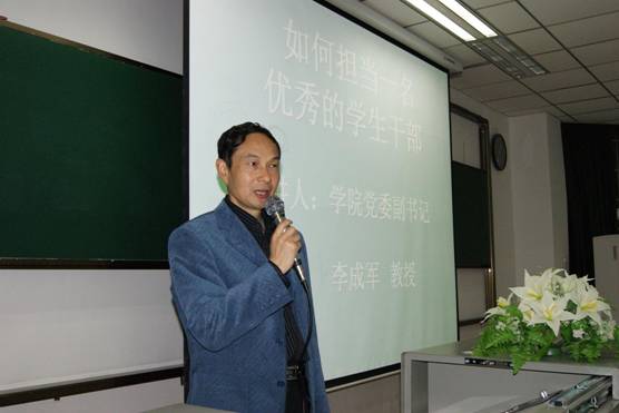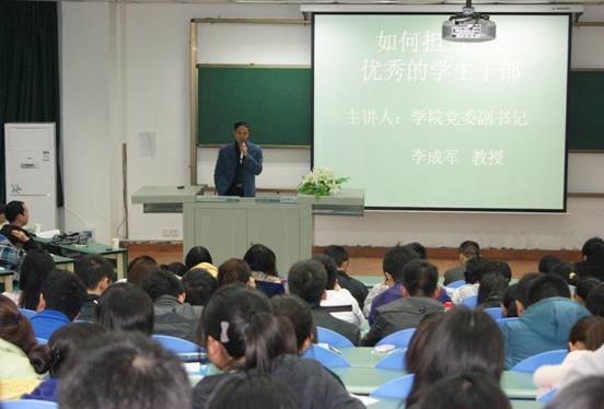 为了进一步提高新年级学生干部综合素质,11月30日晚,学院党委副书记李成军在信息大楼102教室作了一次题为《如何担当一名优秀的学生干部》的主题讲座。