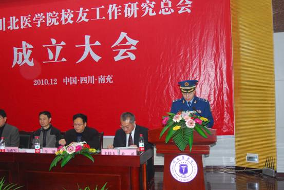 新当选常务理事代表、成都军区452医院院长张聪作为校友代表发言,对校友工作研究总会的成立表示祝贺,对母校所取得的成就感到骄傲和自豪,衷心感谢母校的教育和培养,表示将永远心系母校,进一步加强校友与校友、校友与母校之间的联系,关心和支持母校,与母校一起同舟共济、共谋发展、共求创新、共铸辉煌。