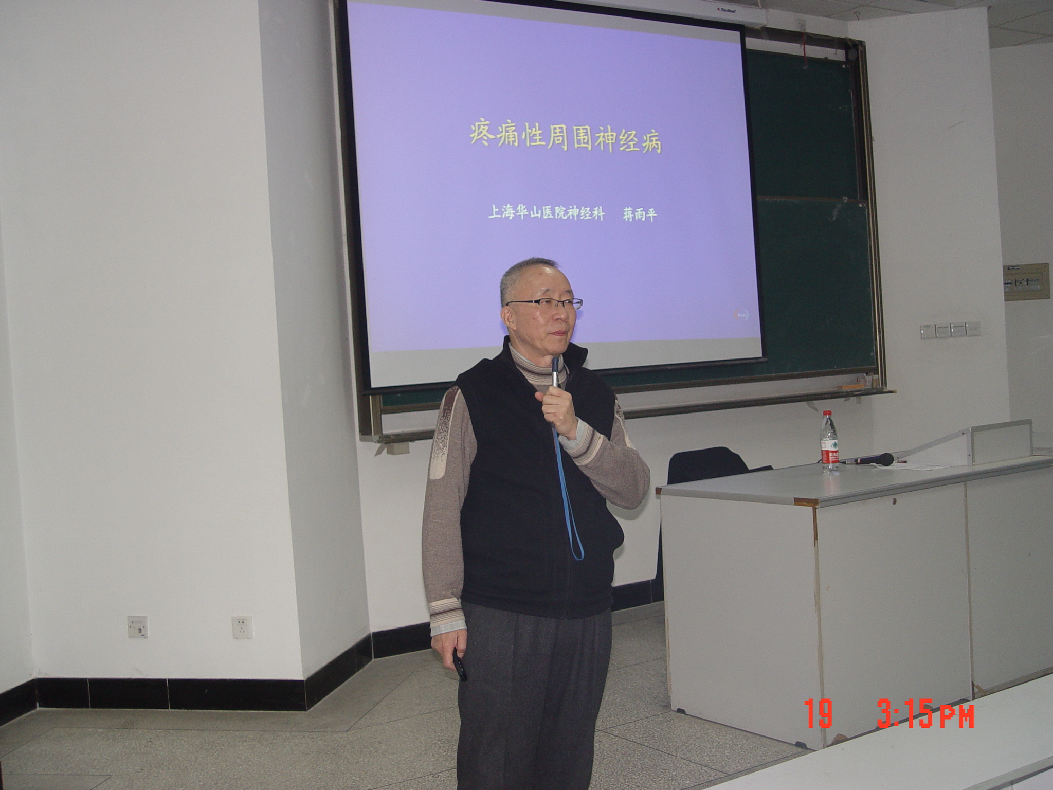 蒋雨平教授首先介绍了疼痛性周围神经病的临床表现、病因及发病机制,然后结合自己多年的工作经验,对临床上常见典型的疼痛性周围神经病例进行详细分析,最后,蒋教授重点阐述了该病的治疗对策。整场讲座一气呵成,在座师生不但学习到了蒋教授精湛的医技,更被他高尚的医德所感染。蒋教授提出:如同市场上产品销售要实行售后服务一样,医务工作者更应该加强患者的随访工作,这对于缓解当前的医患矛盾大有裨益。