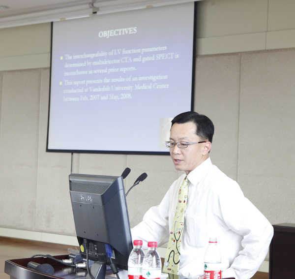 9月29日下午,颜学先博士在医院影像六楼会议厅分别作了题为 Comparison of left ventricular function determined by gated 64-slice CT and SPECT;Complementary role of 11C-acetate and 18F-FDG in the evaluation of hepatocellular carcinoma (HCC);美国医学教育的学术讲座。医学影像系和相关科室专家100余人参加了本次活动。