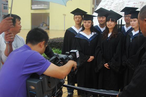 摄制组成员一进校园就投入到了紧张的拍摄工作中,对我校园林式校园进行了认真的考察并仔细选取了拍摄点。先后在教学区医学生誓言处、学院信息综合大楼、学院运动场等地进行了拍摄。整个节目录制过程在快乐和有序中顺利完成。校园美丽的风光和同学们朝气蓬勃的精神面貌给摄制组留下了良好的印象,得到了他们的一致赞赏。