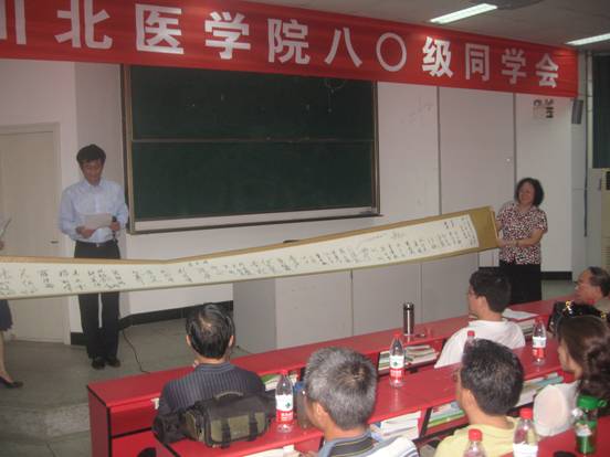 随后,康健院长代表学校接受了80级校友赠送的纪念画轴。
