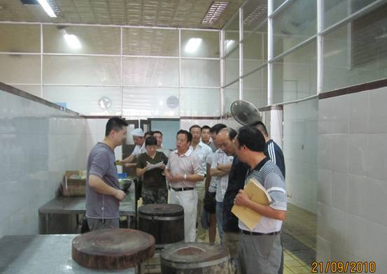 2010年9月21日上午,李健副院长带领后勤产业处处长郭仕伟、副处长蒲君、肖永飞以及饮食服务中心、校医院、后勤产业处办公室有关人员对学校高坪校区学生食堂的食品安全工作进行了全面检查。