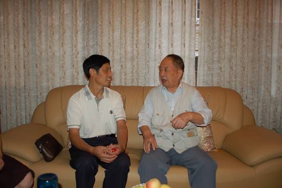 在段桃德老同志的家中,段老热情地欢迎学院领导的来访。已经年过古稀的段老看起来神采奕奕,身体状况良好。鄢书记亲切地拉着段老的手详细地询问老人的身体健康、生活起居、饮食等情况,并送上了慰问金。段老热情地和鄢书记一行话起了当年的抗战经历,大家围坐在段老革命身边,认真地倾听段老讲述他的革命生涯和见证的新中国61年来的发展变化历史。谈话过程中,段老对学院领导的深情关怀一再表示衷心感谢,同时也表达了他对学院发展前景的良好祝愿。期间,学院党委书记凌保东也亲自打来电话向段老致以亲切的问候,希望他保重身体,并对他为新中国的解放事业和建设所做出的贡献感到由衷的敬佩,同时也对他为学院的建设发展所做出的贡献表示衷心的感谢。