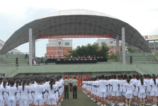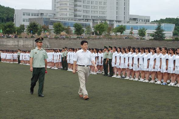 2010年9月10日下午4点,我校2010级新生军训总结大会暨开学典礼在高坪校区足球场隆重举行。2010级全体新生经过艰苦的军训接受了检阅,开始了大学的新的学习生活。出席大会的领导有:学院党委书记凌保东,院长康健,党委副书记李成军,党委副书记鄢佳程、副院长李健、杜勇、雷军,武警8740部队王少军中校等。学校有关部处、各院、系的负责同志和老师,2010级全体新同学参加了典礼。典礼由学院党办、院办主任胡春梅主持。