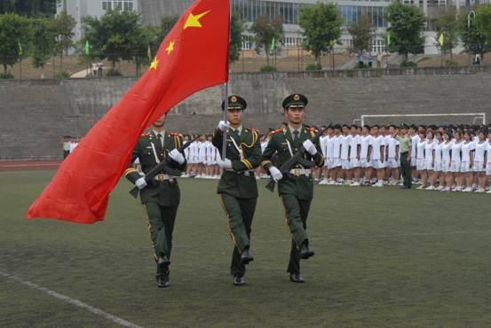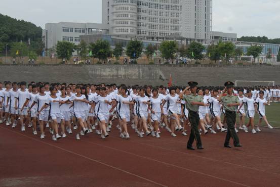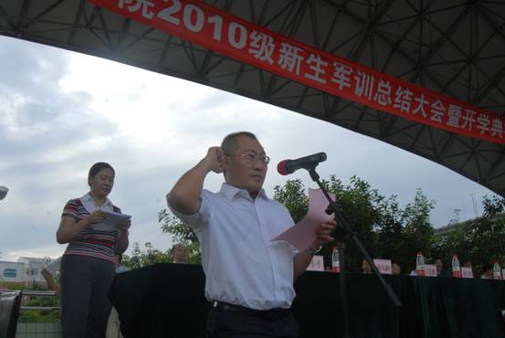 武警8740部队中校、军训团参谋长王少军组织了军训汇报表演,在王少军的陪同下,学院党委书记凌保东检阅了这支由2010级新生组成的精神焕发,斗志昂扬的部队。